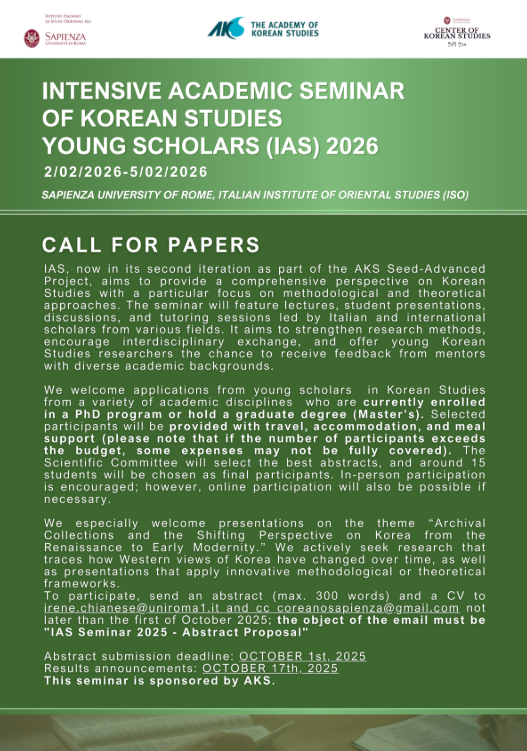 Seminar of Korean Studies for Young Scholars (IAS) 2026*, organized by the