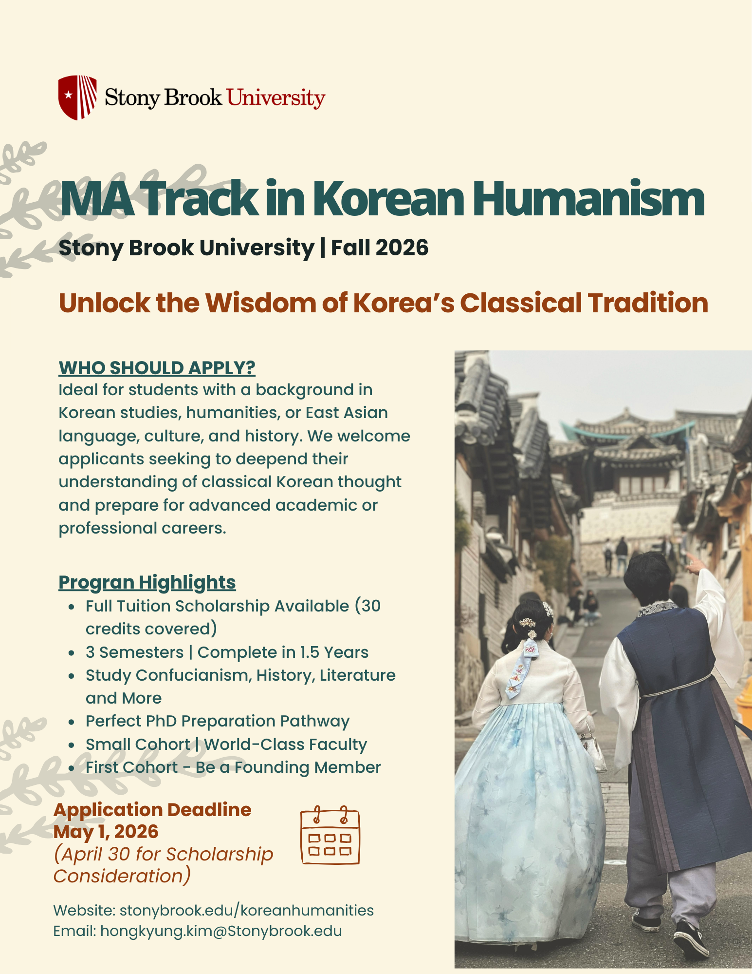 [KS] MA in Korean Humanism at Stony Brook Univ. – Applications Open (Deadline: May 1)
